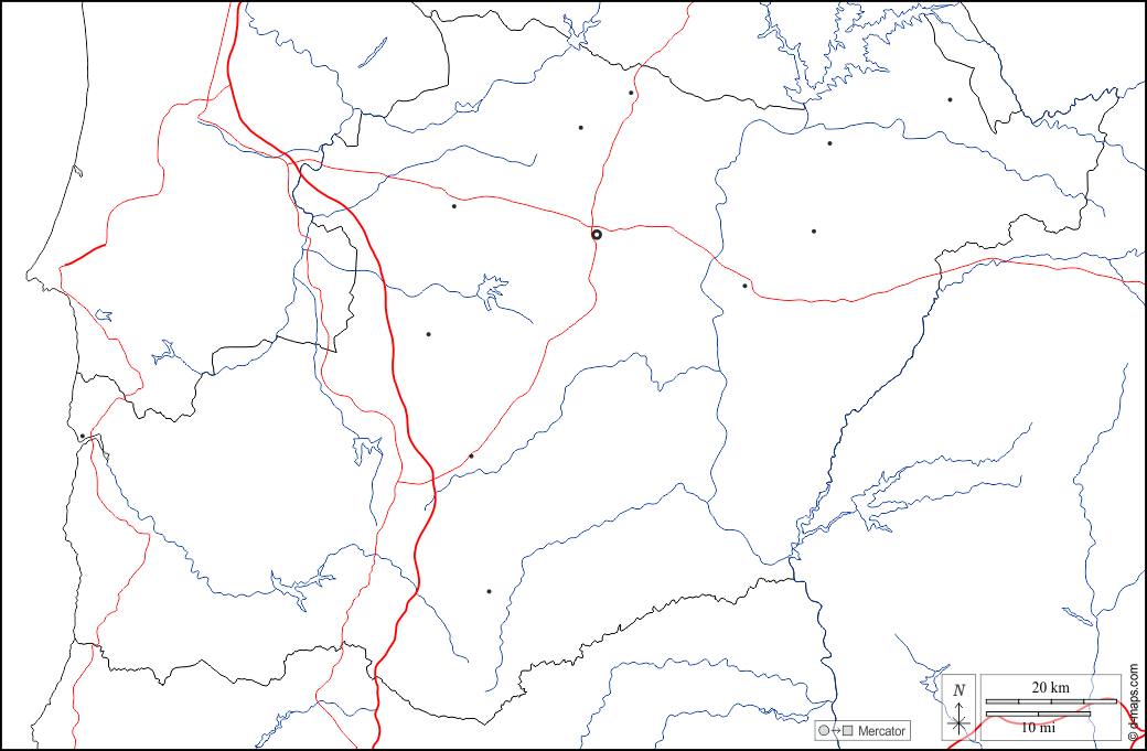 d-maps > 欧洲 > 葡萄牙 > 貝雅區 > 边界, 水文学, 主要城市, 道路, 白