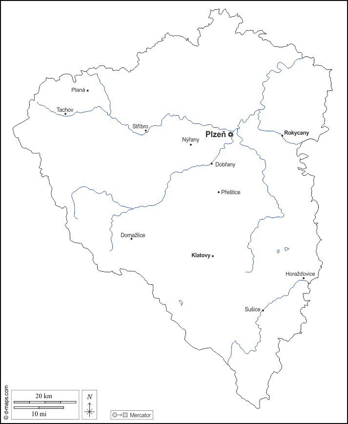 d-maps > 欧洲 > 捷克 > 比爾森州 > 大纲, 水文学, 主要城市, 名称, 白
