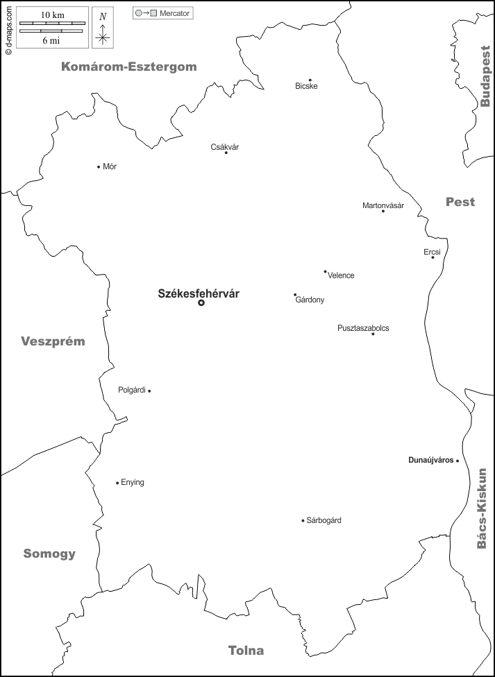 d-maps > 欧洲 > 匈牙利 > 費耶爾州 > 边界, 主要城市, 名称, 白
