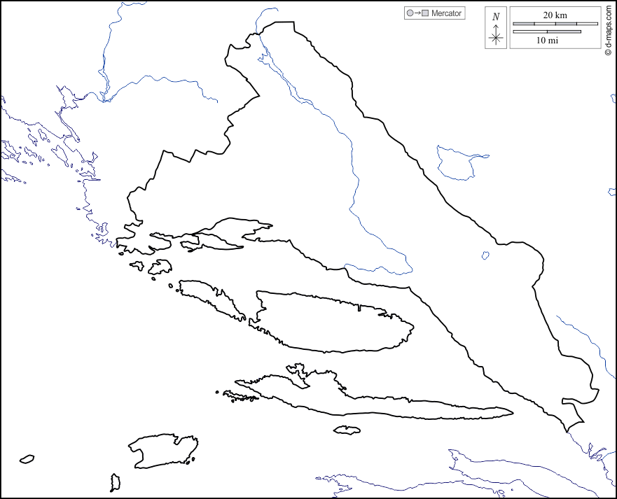 d-maps > 欧洲 > 克罗地亚 > 斯普利特-達爾馬提亞縣 > 海岸, 限制, 水文学, 白