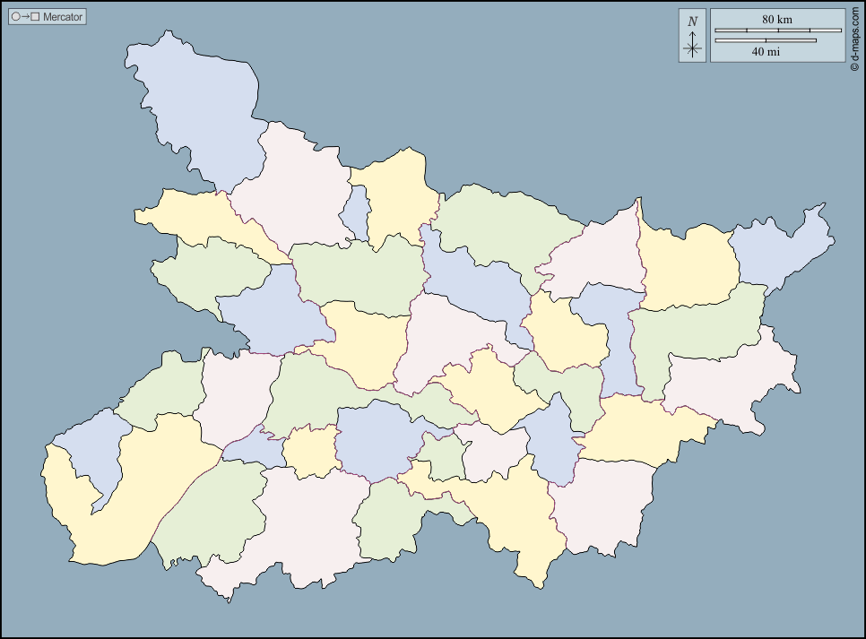 d-maps > 亚洲 > 印度 > 比哈尔邦 > 大纲, 區域, 颜色