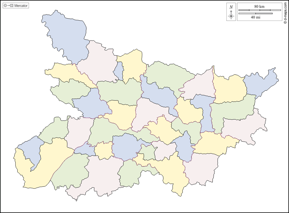 d-maps > 亚洲 > 印度 > 比哈尔邦 > 大纲, 區域, 颜色, 白