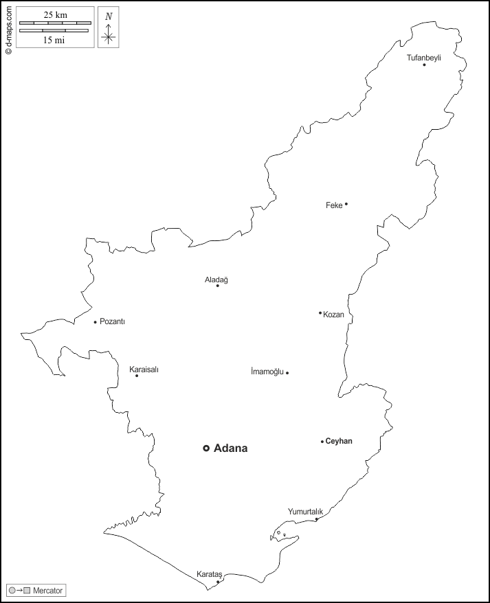 Adana - Aladag - Ceyhan - Feke - Imamoglu - Karaisali - Karatas - Kozan - Pozanti - Tufanbeyli - Yumurtalik