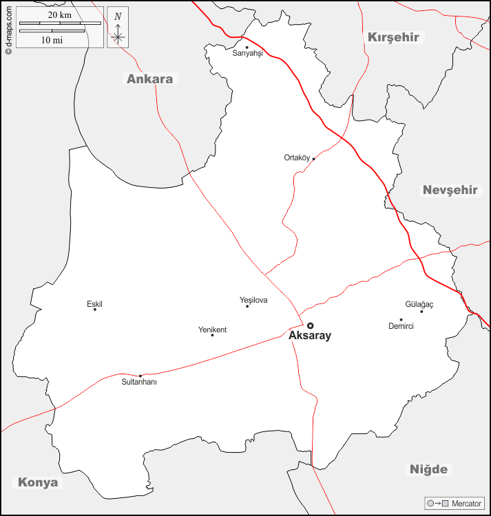 Aksaray - Demirci - Eskil - Gülagaç - Ortaköy - Sariyahsi - Sultanhani - Yenikent - Yesilova