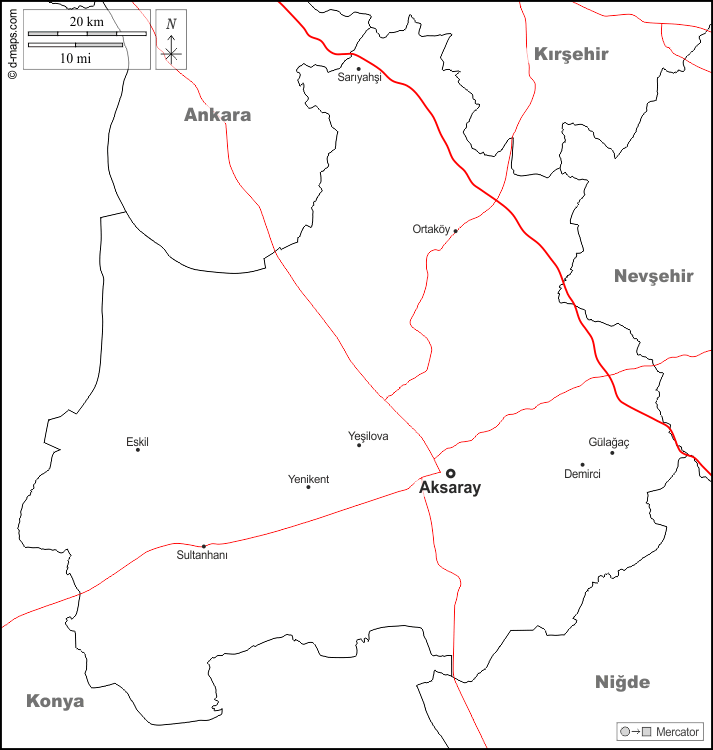 Aksaray - Demirci - Eskil - Gülagaç - Ortaköy - Sariyahsi - Sultanhani - Yenikent - Yesilova