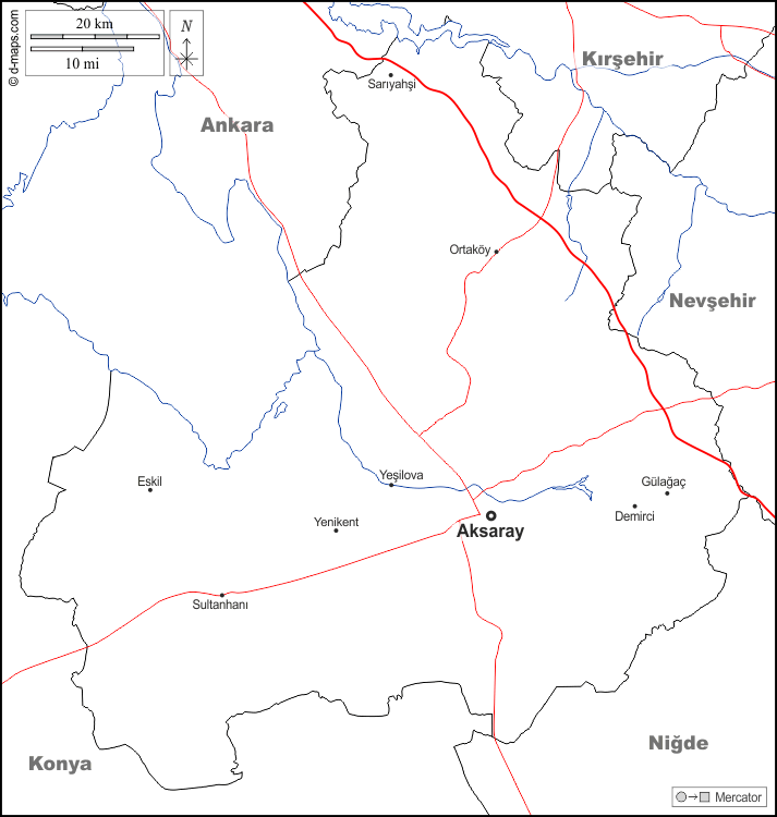 Aksaray - Demirci - Eskil - Gülagaç - Ortaköy - Sariyahsi - Sultanhani - Yenikent - Yesilova