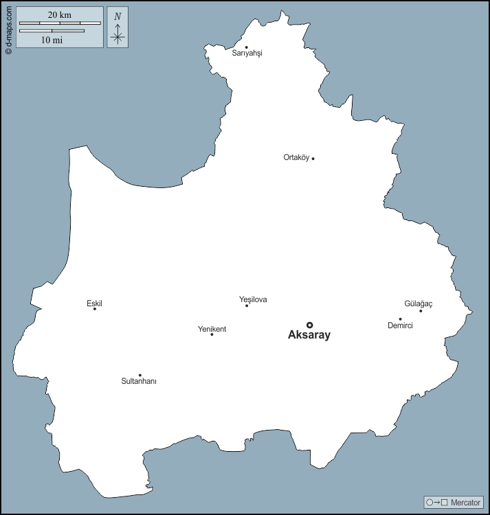 Aksaray - Demirci - Eskil - Gülagaç - Ortaköy - Sariyahsi - Sultanhani - Yenikent - Yesilova