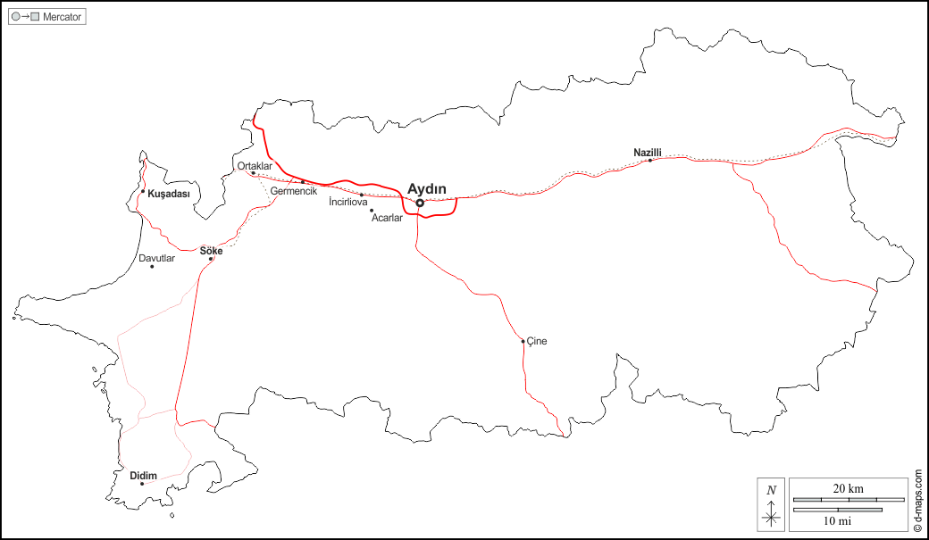 Acarlar - Aydin - Davutlar - Didim - Germencik - Incirliova - Kusadasi - Nazilli - Ortaklar - Söke - Çine