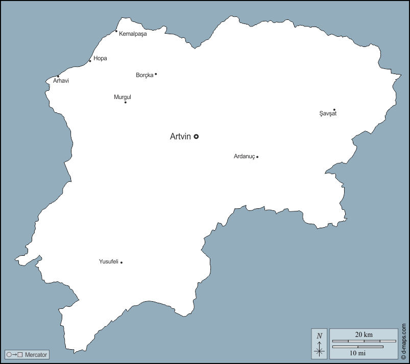 Ardanuç - Arhavi - Artvin - Borçka - Hopa - Kemalpasa - Murgul - Savsat - Yusufeli