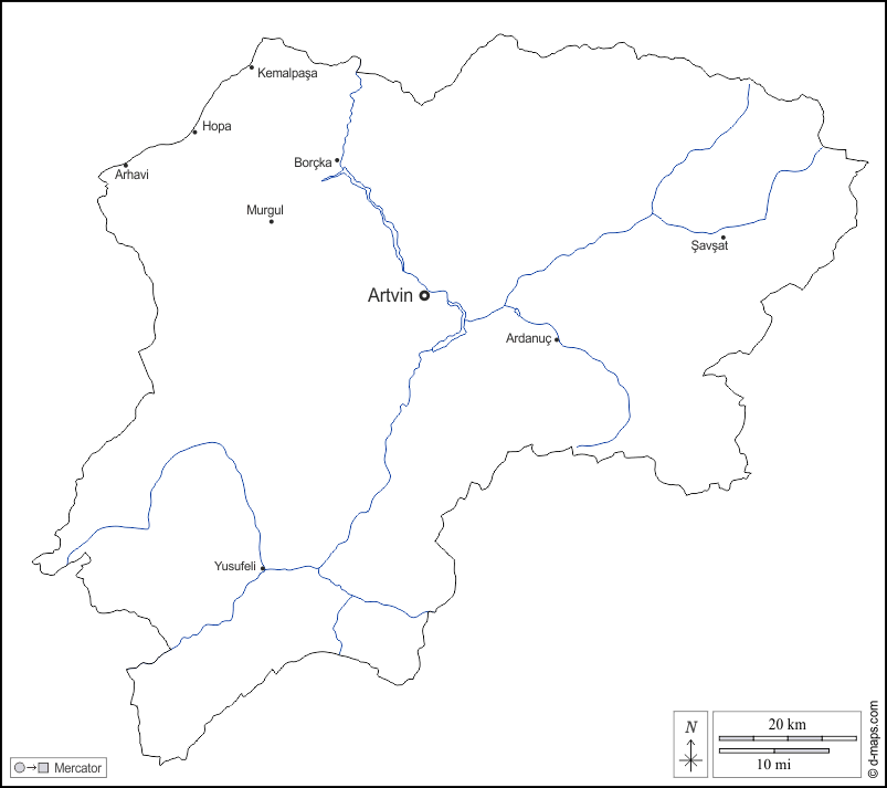 Ardanuç - Arhavi - Artvin - Borçka - Hopa - Kemalpasa - Murgul - Savsat - Yusufeli
