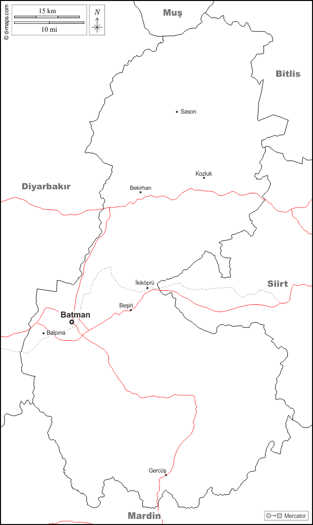 Balpina - Batman - Bekirhan - Besiri - Gercüs - Ikiköprü - Kozluk - Sason