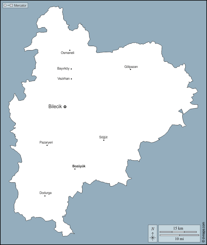 Bayirköy - Bilecik - Bozüyük - Dodurga - Gölpazari - Osmaneli - Pazaryeri - Sögüt - Vezirhan
