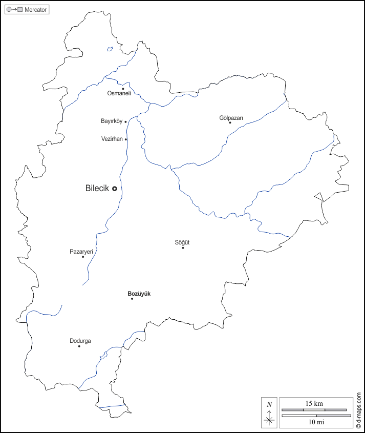 Bayirköy - Bilecik - Bozüyük - Dodurga - Gölpazari - Osmaneli - Pazaryeri - Sögüt - Vezirhan