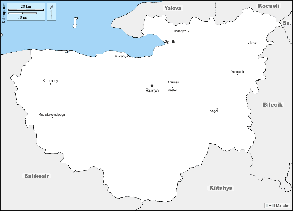 d-maps > 亚洲 > 土耳其 > 布尔萨省 > 边界, 主要城市, 名称