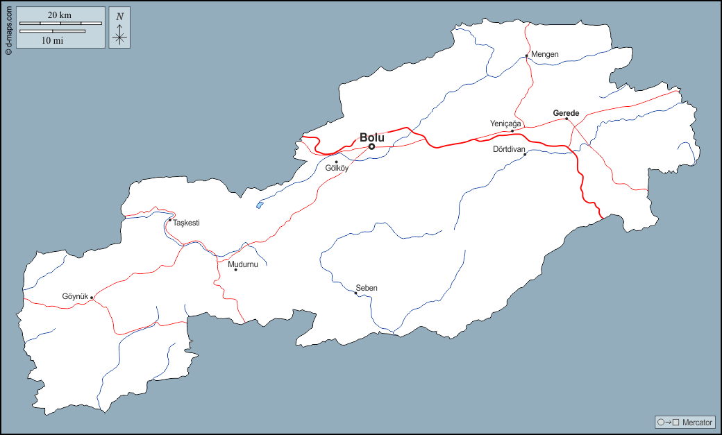 Bolu - Dörtdivan - Gerede - Gölköy - Göynük - Mengen - Mudurnu - Seben - Taskesti - Yeniçaga