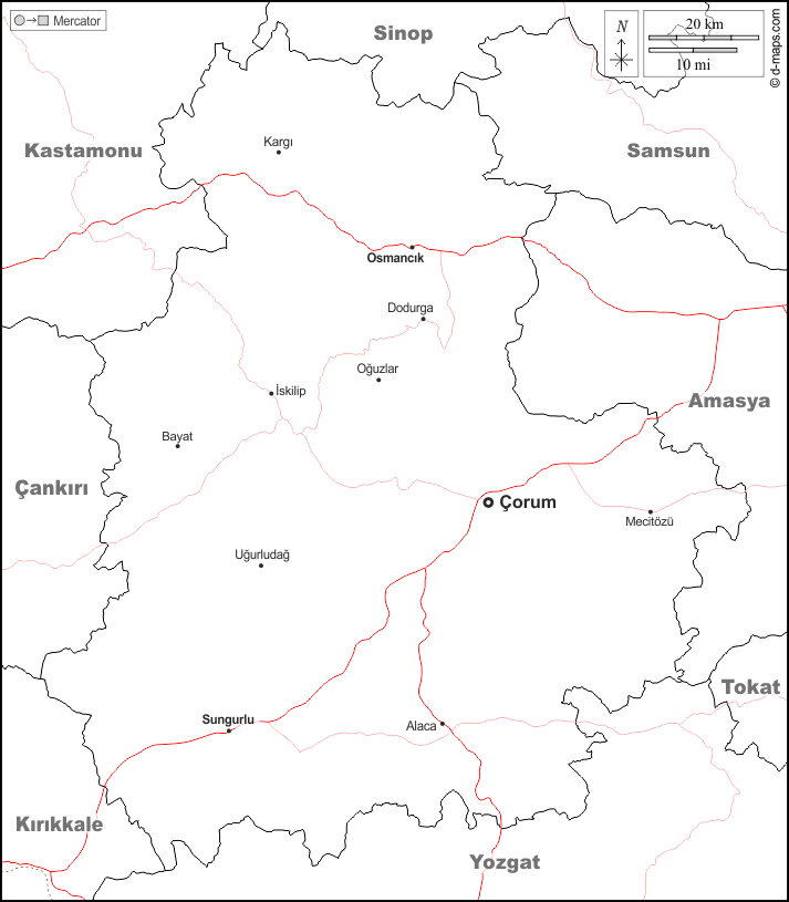 Alaca - Bayat - Dodurga - Iskilip - Kargi - Mecitözü - Oguzlar - Osmancik - Sungurlu - Ugurludag - Çorum