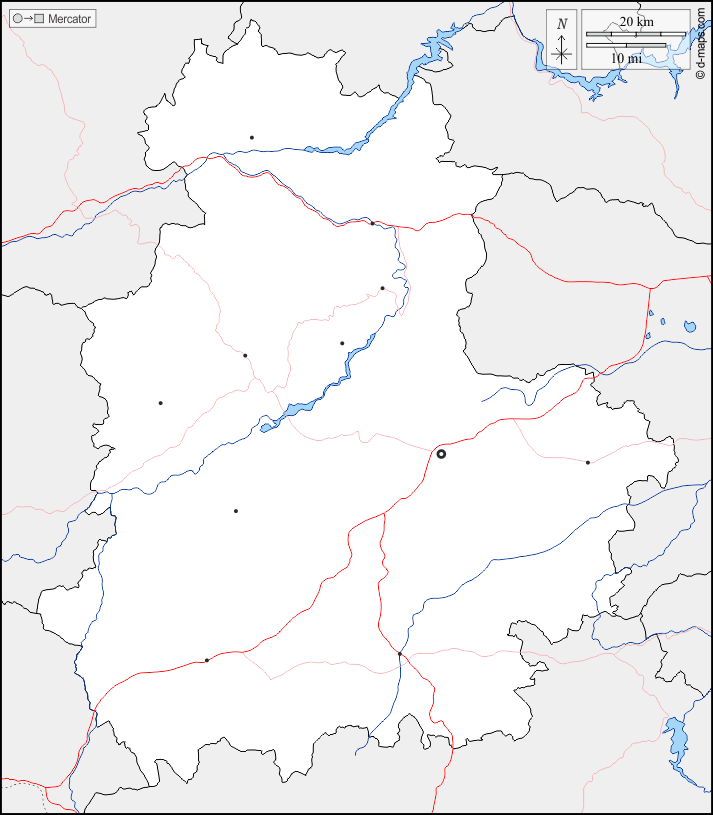边界, 水文学, 主要城市, 道路