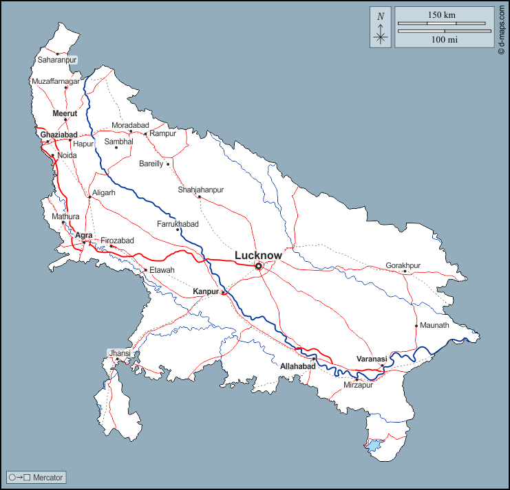 d-maps > 亚洲 > 印度 > 北方邦 > 大纲, 水文学, 主要城市, 道路, 名称