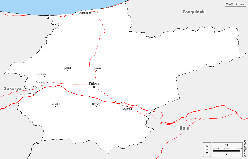 Akçakoca - Beyköy - Cumayeri - Düzce - Gölyaka - Gümüsova - Kaynasli - Yörük - Çilimli