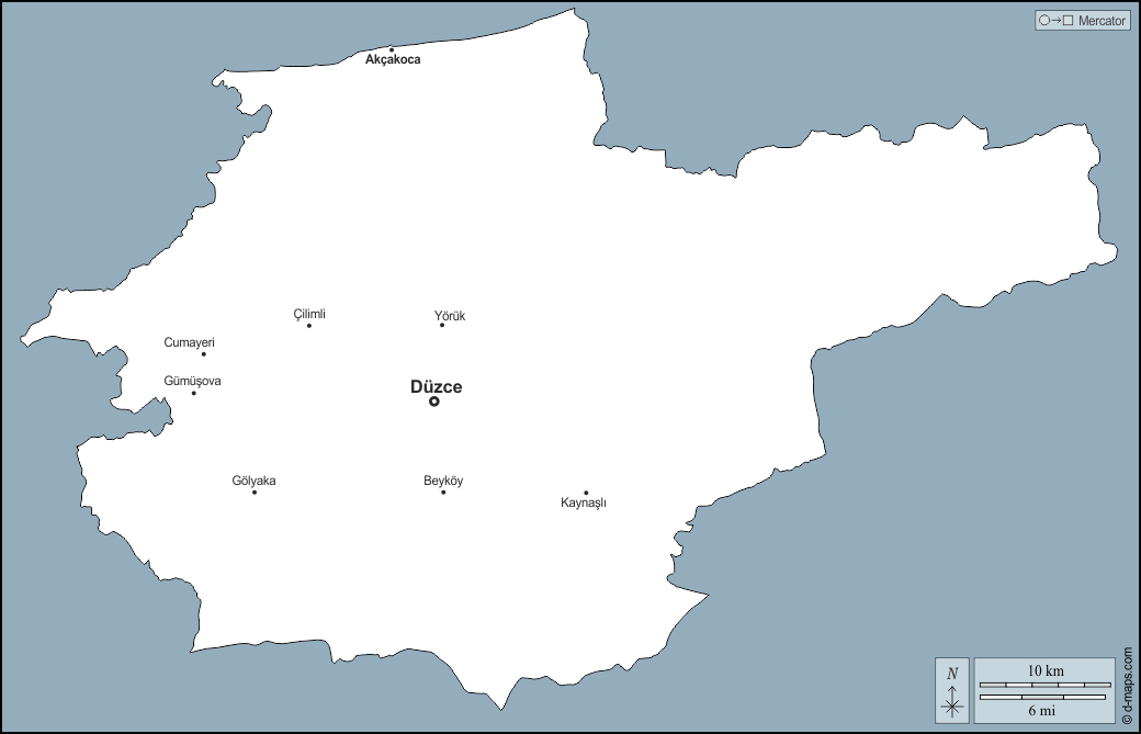 Akçakoca - Beyköy - Cumayeri - Düzce - Gölyaka - Gümüsova - Kaynasli - Yörük - Çilimli