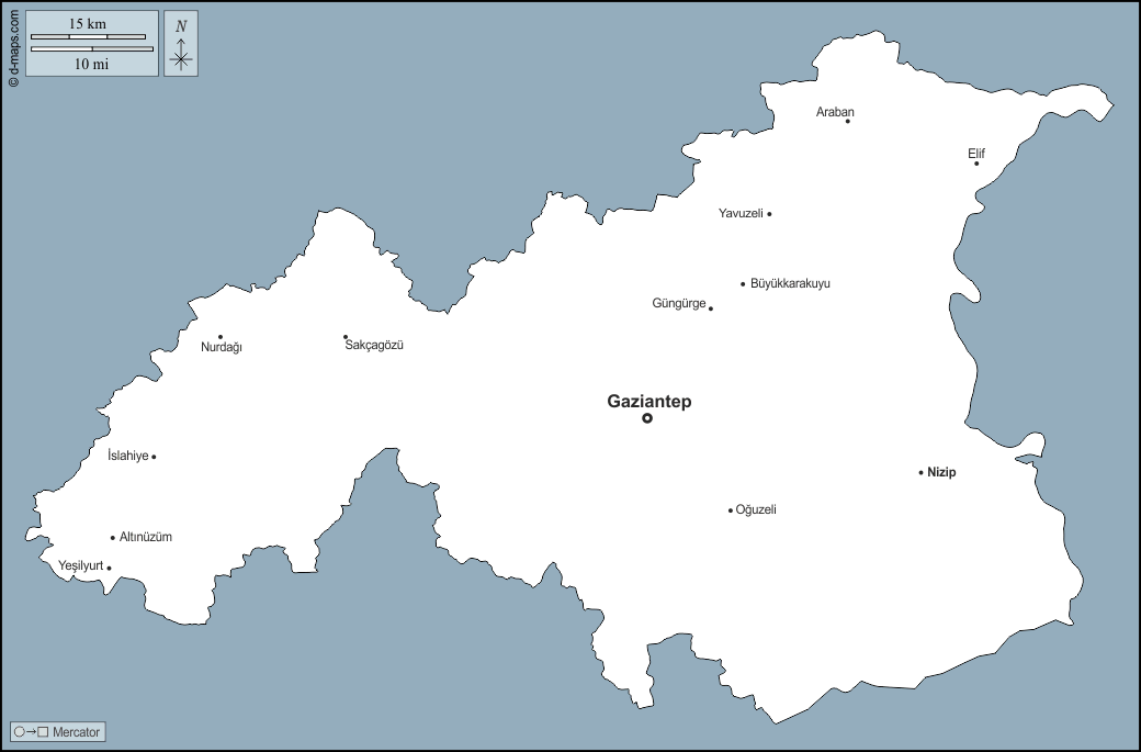 d-maps > 亚洲 > 土耳其 > 加济安泰普省 > 大纲, 主要城市, 名称