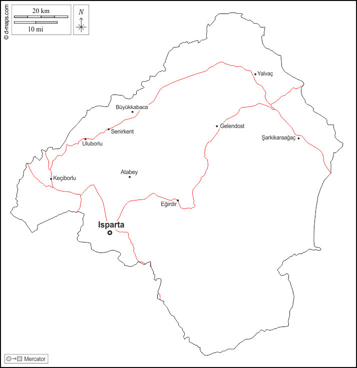 d-maps > 亚洲 > 土耳其 > 厄斯帕尔塔省 > 大纲, 主要城市, 道路, 名称, 白
