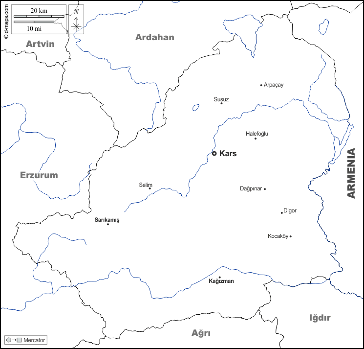 Arpaçay - Dagpinar - Digor - Halefoglu - Kagizman - Kars - Kocaköy - Sarikamis - Selim - Susuz