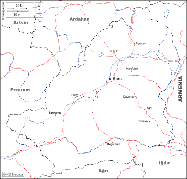 Arpaçay - Dagpinar - Digor - Halefoglu - Kagizman - Kars - Kocaköy - Sarikamis - Selim - Susuz