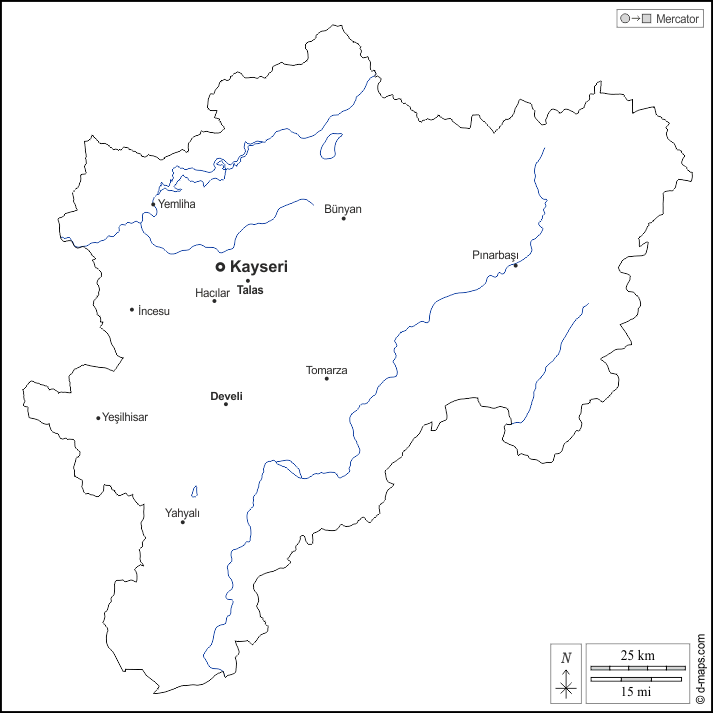 d-maps > 亚洲 > 土耳其 > 开塞利省 > 大纲, 水文学, 主要城市, 名称, 白