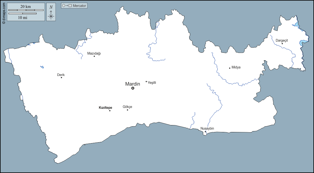 Dargeçit - Derik - Gökçe - Kiziltepe - Mardin - Mazidagi - Midya - Nusaybin - Yesilli