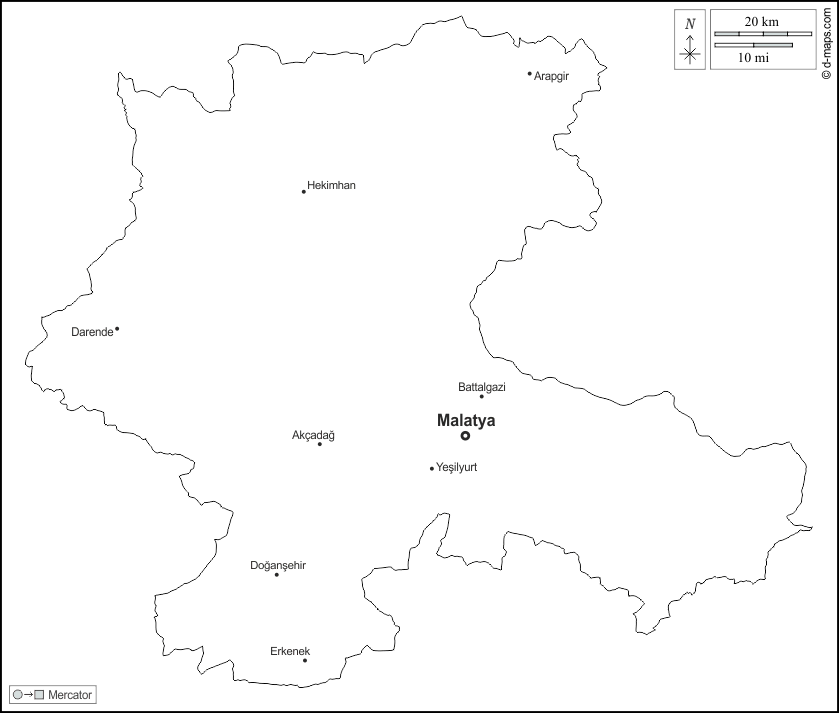 Akçadag - Arapgir - Battalgazi - Darende - Dogansehir - Erkenek - Hekimhan - Malatya - Yesilyurt