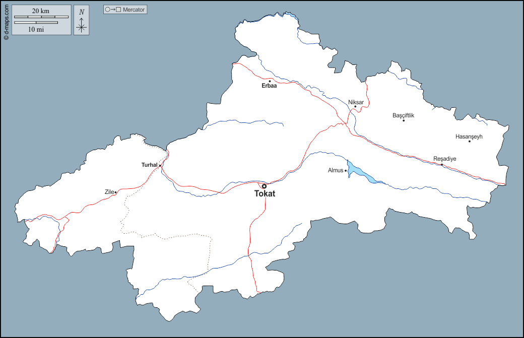 Almus - Basçiftlik - Erbaa - Hasanseyh - Niksar - Resadiye - Tokat - Turhal - Zile