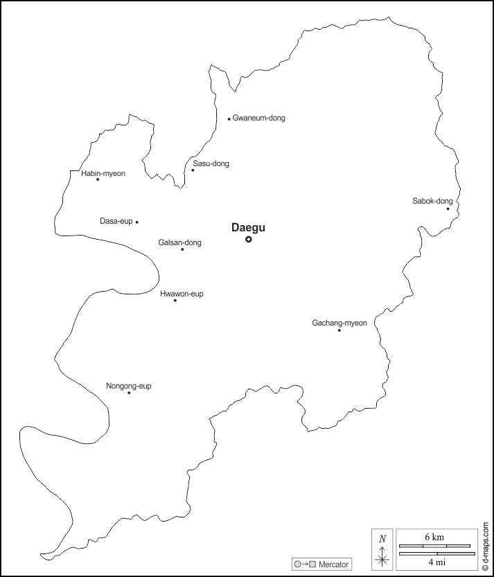 大邱 - 大沙邑 - 高昌面 - 加山洞 - 观内洞 - 哈滨面 - 华原邑 - 农宫邑 - 沙博洞 - 佐助洞