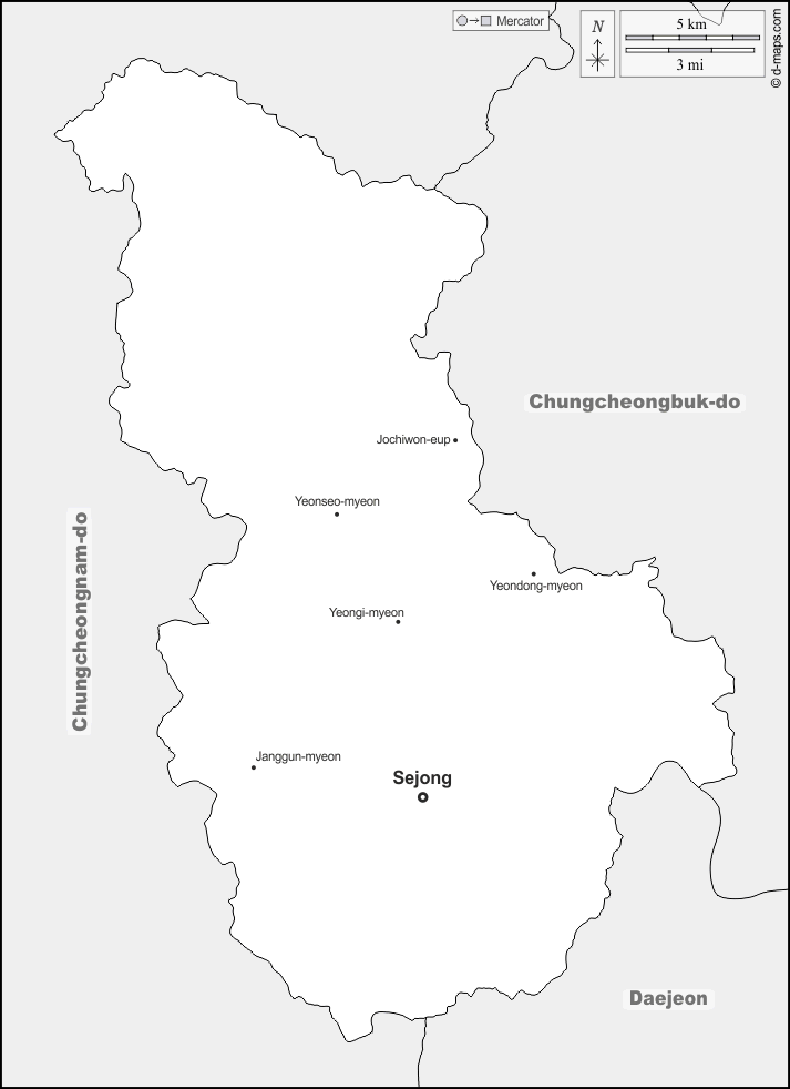 长郡面 - 上院邑 - 世宗 - 延东面 - 延畿面 - 延西面