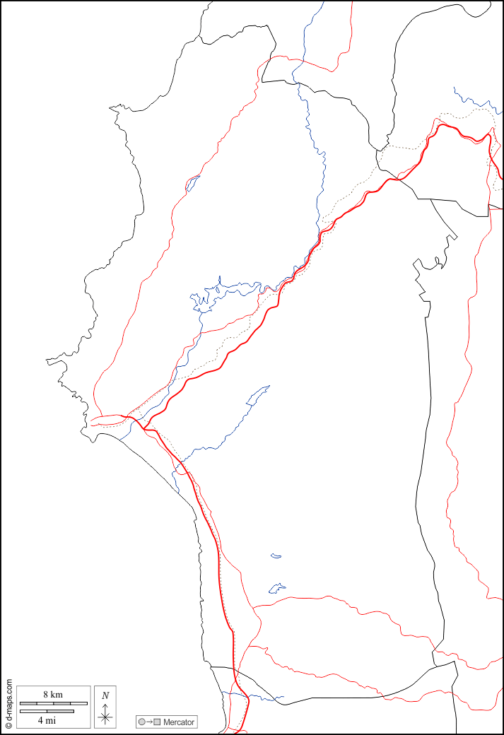 d-maps > 亚洲 > 叙利亚 > 拉塔基亚省 > 边界, 水文学, 道路, 白