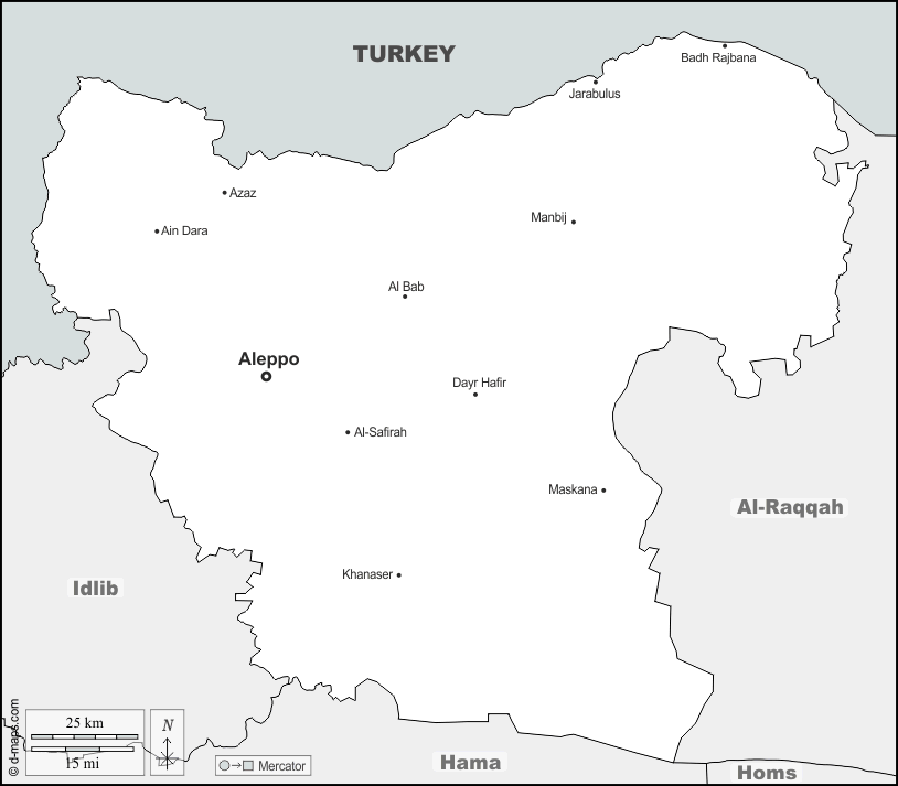 d-maps > 亚洲 > 叙利亚 > 阿勒颇省 > 边界, 主要城市, 名称