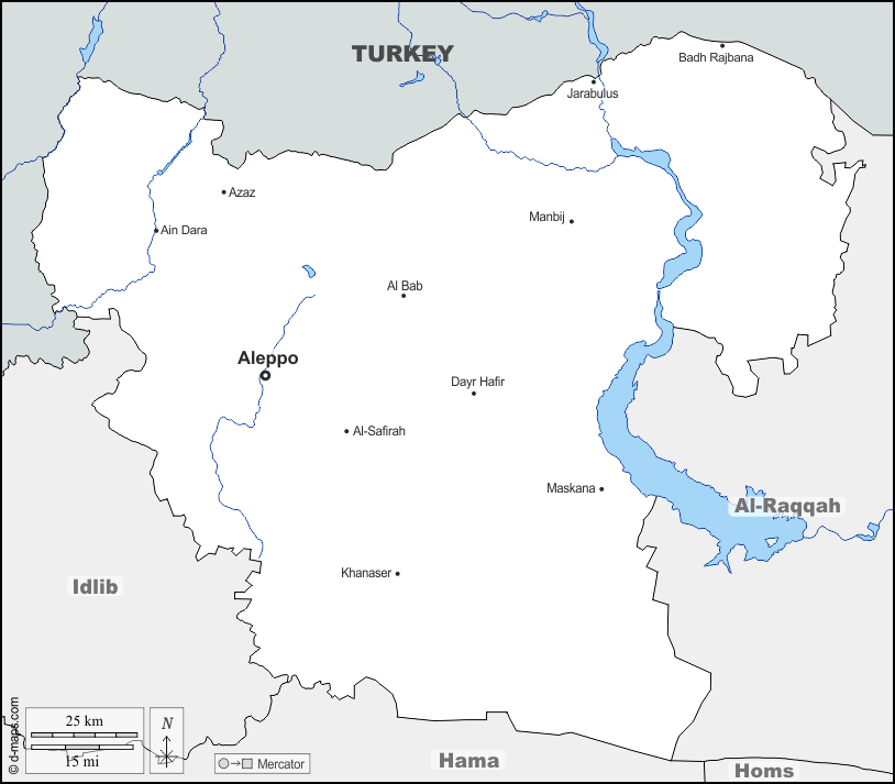 d-maps > 亚洲 > 叙利亚 > 阿勒颇省 > 边界, 水文学, 主要城市, 名称