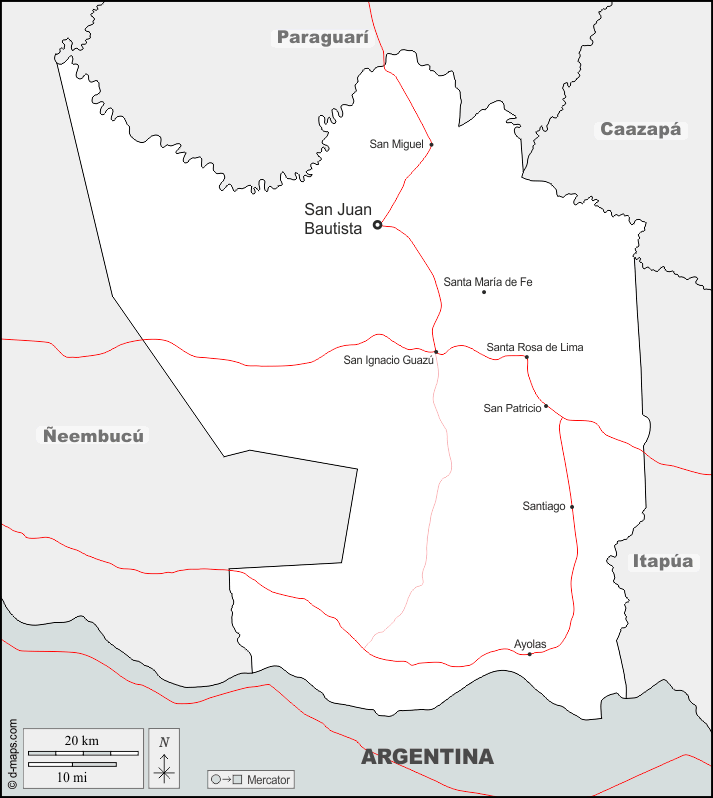 d-maps > 美洲 > 巴拉圭 > 米西奧內斯省 > 边界, 主要城市, 道路, 名称