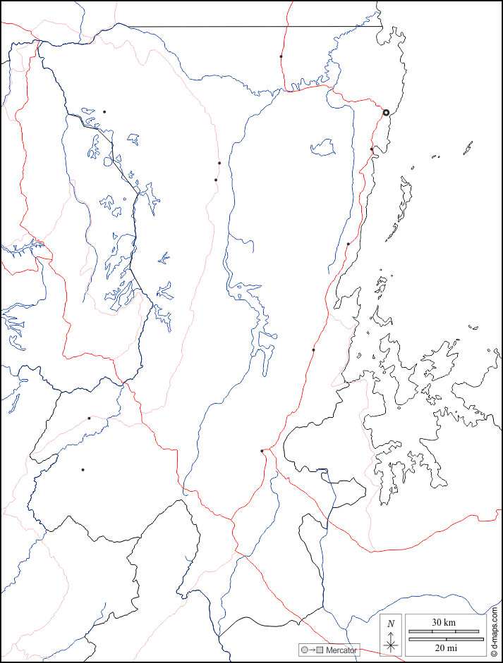 d-maps > 非洲 > 坦桑尼亚 > 卡蓋拉區 > 边界, 水文学, 主要城市, 道路, 白