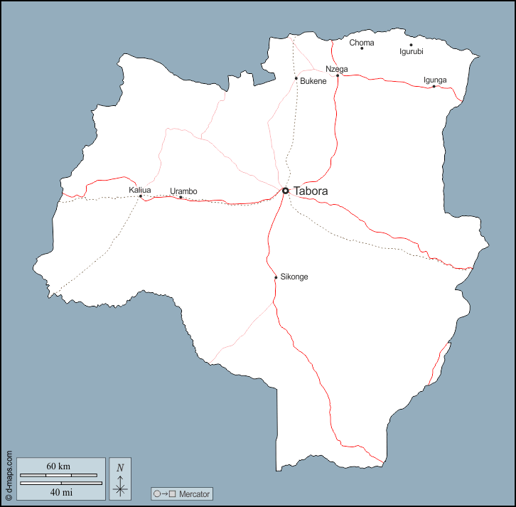 Bukene - Choma - Igunga - Igurubi - Kaliua - Nzega - Sikonge - Tabora - Urambo