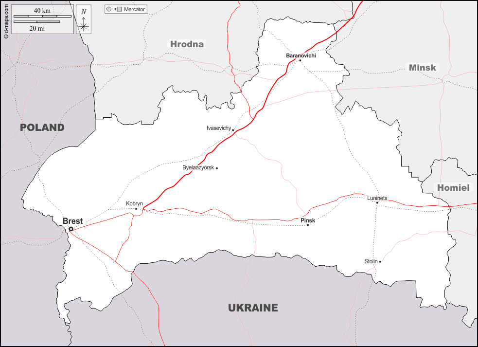 Baranovichi - Brest - Byelaazyorsk - Ivasevichy - Kobryn - Luninets - Pinsk - Stolin