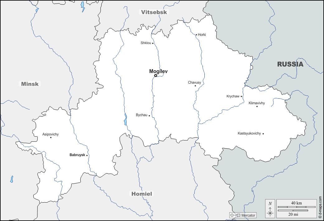 d-maps > 欧洲 > 白俄罗斯 > 莫吉廖夫州 > 边界, 水文学, 主要城市, 名称