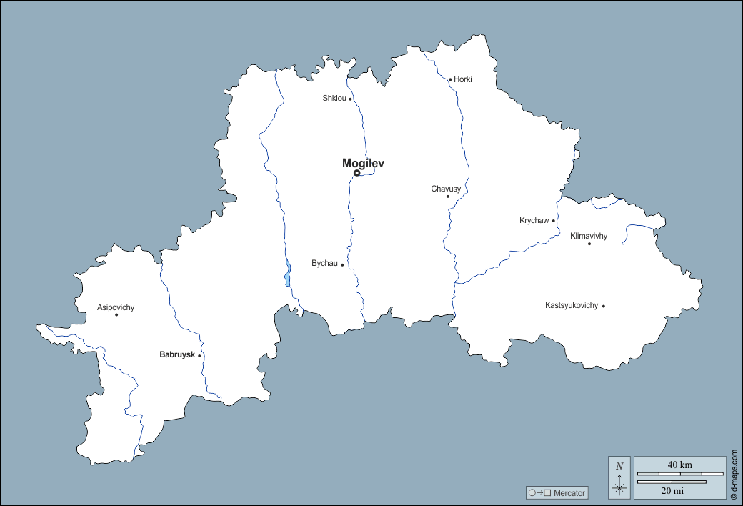d-maps > 欧洲 > 白俄罗斯 > 莫吉廖夫州 > 大纲, 水文学, 主要城市, 名称