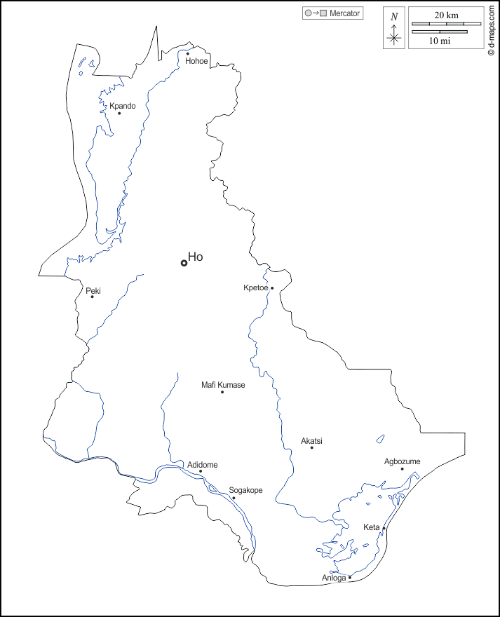 d-maps > 非洲 > 加纳 > 沃爾特大區 > 大纲, 水文学, 主要城市, 名称, 白