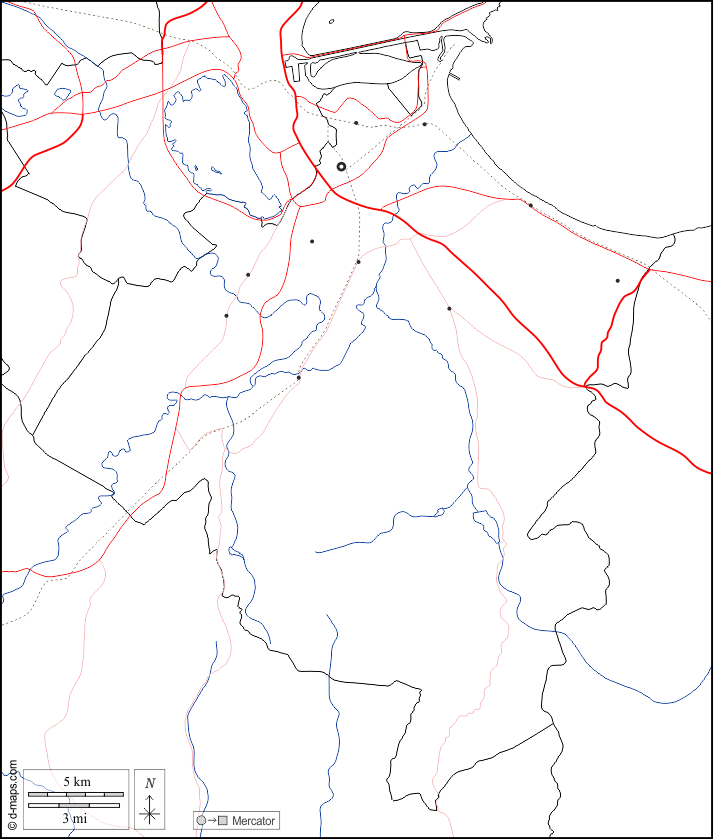 d-maps > 非洲 > 突尼斯 > 本阿魯斯省 > 边界, 水文学, 主要城市, 道路, 白