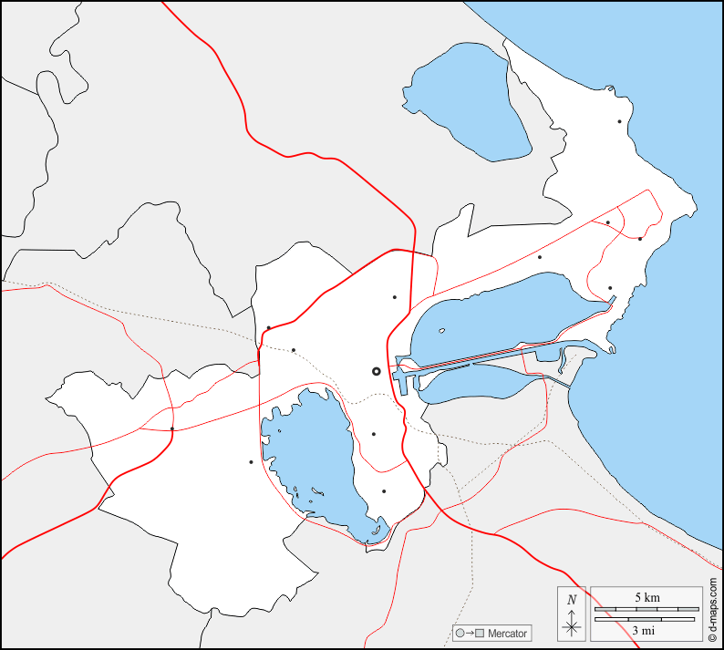 d-maps > 非洲 > 突尼斯 > 突尼斯省 > 边界, 主要城市, 道路