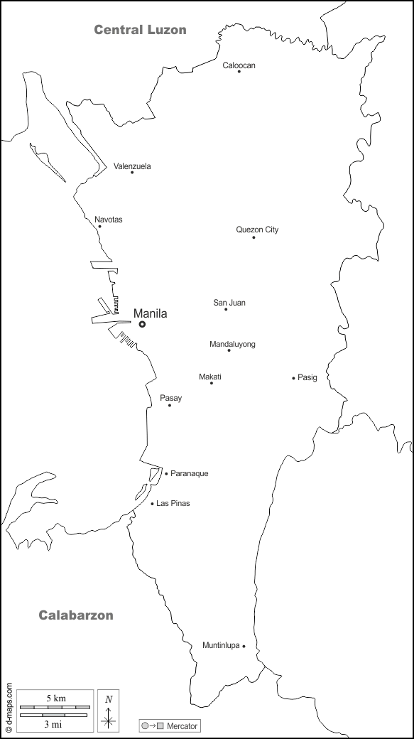 卡洛奥坎 - 拉斯皮纳斯 - 马卡蒂 - 曼达卢永 - 马尼拉 - 蒙廷卢帕 - 纳沃塔斯 - 帕拉纳克 - 帕赛 - 帕西格 - 奎松市 - 圣胡安 - 巴伦苏埃拉