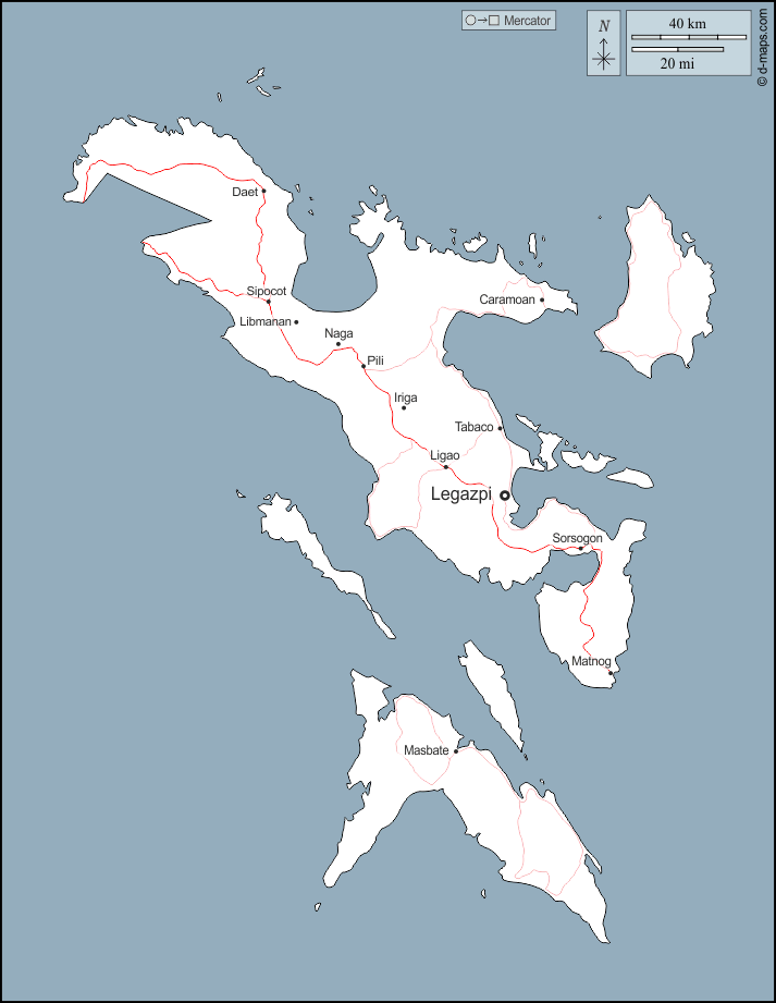 卡拉莫安 - 达特 - 伊里加 - 黎牙实比 - 利马南 - 利高 - 马斯巴特 - 马特诺格 - 娜迦 - 皮利 - 西波科特 - 索索贡 - 塔巴科