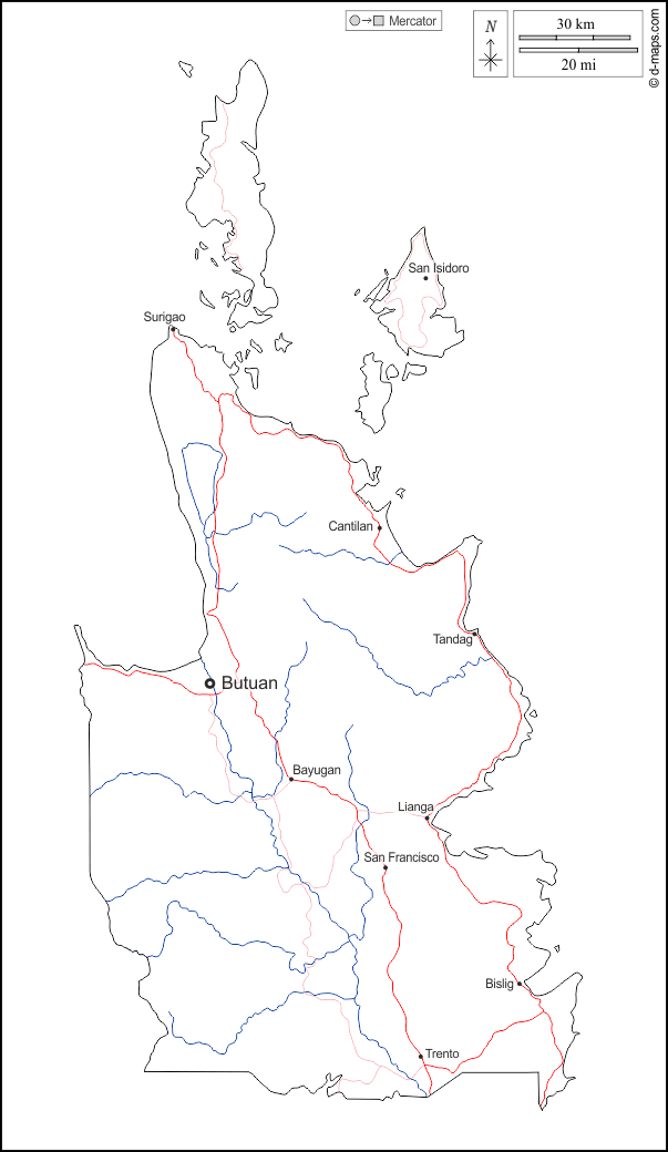 巴尤干 - 比斯利格 - 武端 - 坎蒂兰 - 利昂加 - 旧金山 - 圣伊西多罗 - 苏里高 - 坦达格 - 特伦托
