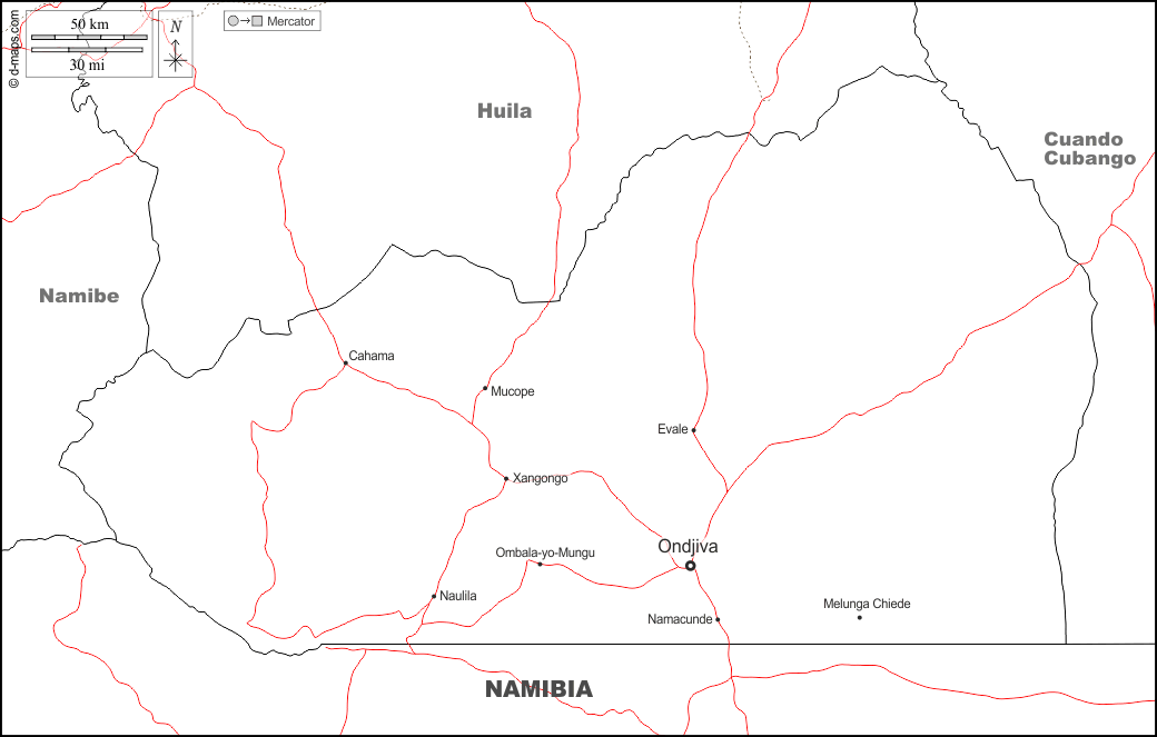 Cahama - Evale - Melunga Chiede - Mucope - Namacunde - Naulila - Ombala-yo-Mungu - Ondjiva - Xangongo